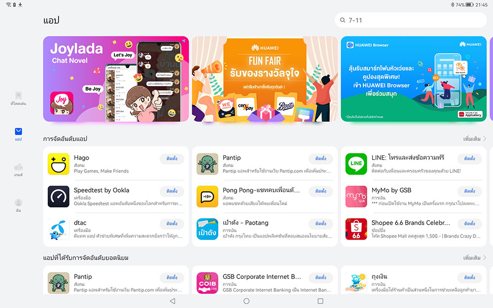 AppGallery แหล่งรวมแอปพลิเคชันดาวน์โหลดสำหรับอุปกรณ์ HUAWEI ที่ไม่มี GMS ซึ่งก็มีแอปพลิเคชันหลัก ๆ ให้ดาวน์โหลดมากพอสมควรแล้วในตอนนี้ ส่วนแอปฯ ไหนที่ไม่มีบน AppGallery ก็สามารถค้นหาได้จากเบราว์เซอร์และเลือกดาวน์โหลดได้เลย ซึ่งจากการทดสอบพบว่า สามารถใช้งานได้ตามปกติ และยังไม่พบเจอปัญหาใด ๆ