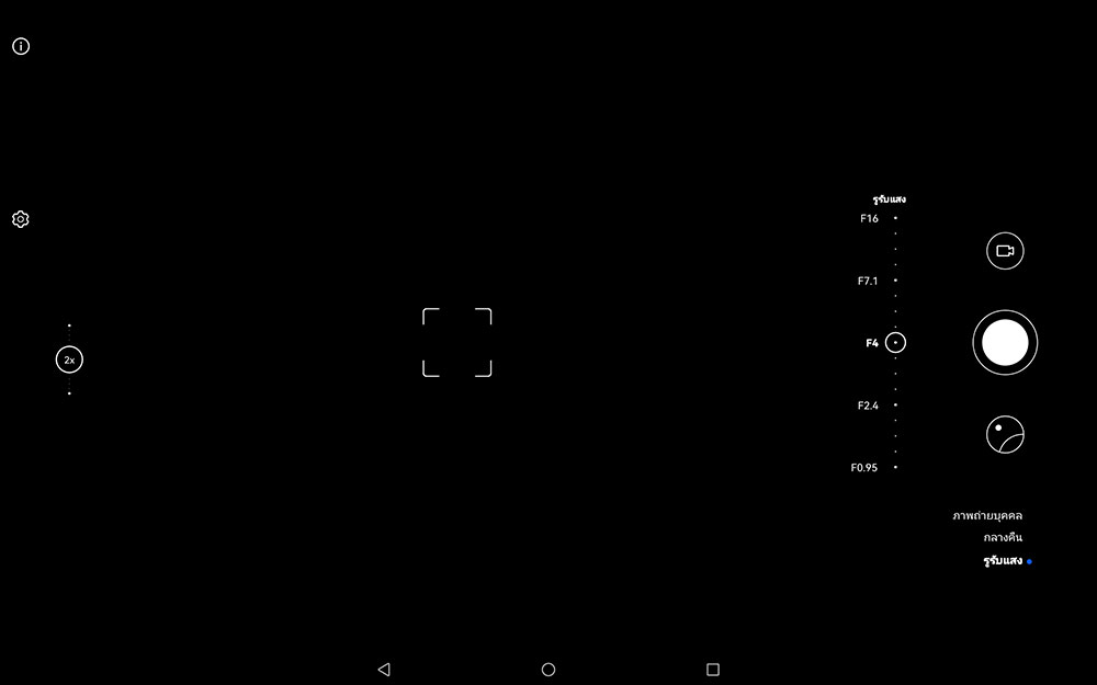 โหมดรูรับแสง สามารถเลือกขนาดของรูรับแสงได้ตั้งแต่ F0.95 - F16 และสามารถซูมได้