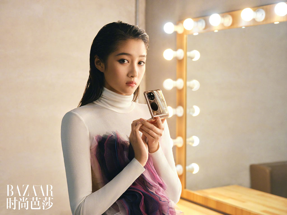 สำหรับภาพเซ็ตดังกล่าวถูกแชร์บนนิตยสารแฟชั่น Harper's Bazaar ซึ่งเป็นภาพที่นักแสดงสาวถ่ายคู่กับ HUAWEI P50 Pocket เผยให้เห็นดีไซน์ตัวเครื่องที่ตรงกับภาพหลุดที่เผยออกมาก่อนหน้านั้น โดย HUAWEI P50 Pocket เป็นมือถือฝาพับดีไซน์ Clamshell หรือพับแนวตั้ง สไตล์เดียวกับ Galaxy Z Flip3 และ Motorola Razr