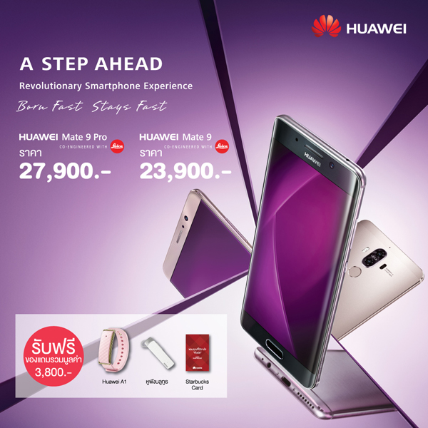มอบโปรโมชั่นสุดฮอทสำหรับรุ่นต่างๆในงาน Thailand Mobile Expo 2017 ครั้งที่ 1 ระหว่างวันที่ 9-12 กุมภาพันธ์ 2560 ด้วยของสมมนาคุณมูลค่ารวมกว่า 4,400 บาท สำหรับผลิตภัณฑ์ในกลุ่ม Huawei P9 Series, 3,800 บาทสำหรับผลิตภัณฑ์ในกลุ่ม Huawei Mate 9 Series, 3,100 บาทสำหรับผลิตภัณฑ์ในกลุ่ม Huawei GR5 2017