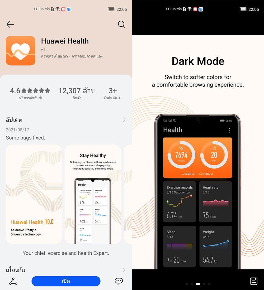 เชื่อมต่อกับสมาร์ทโฟนผ่านแอปพลิเคชัน HUAWEI Health