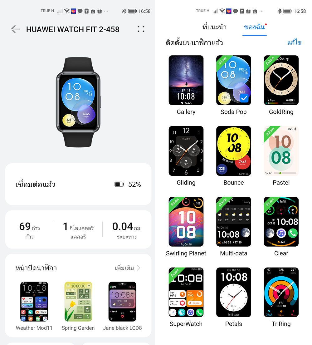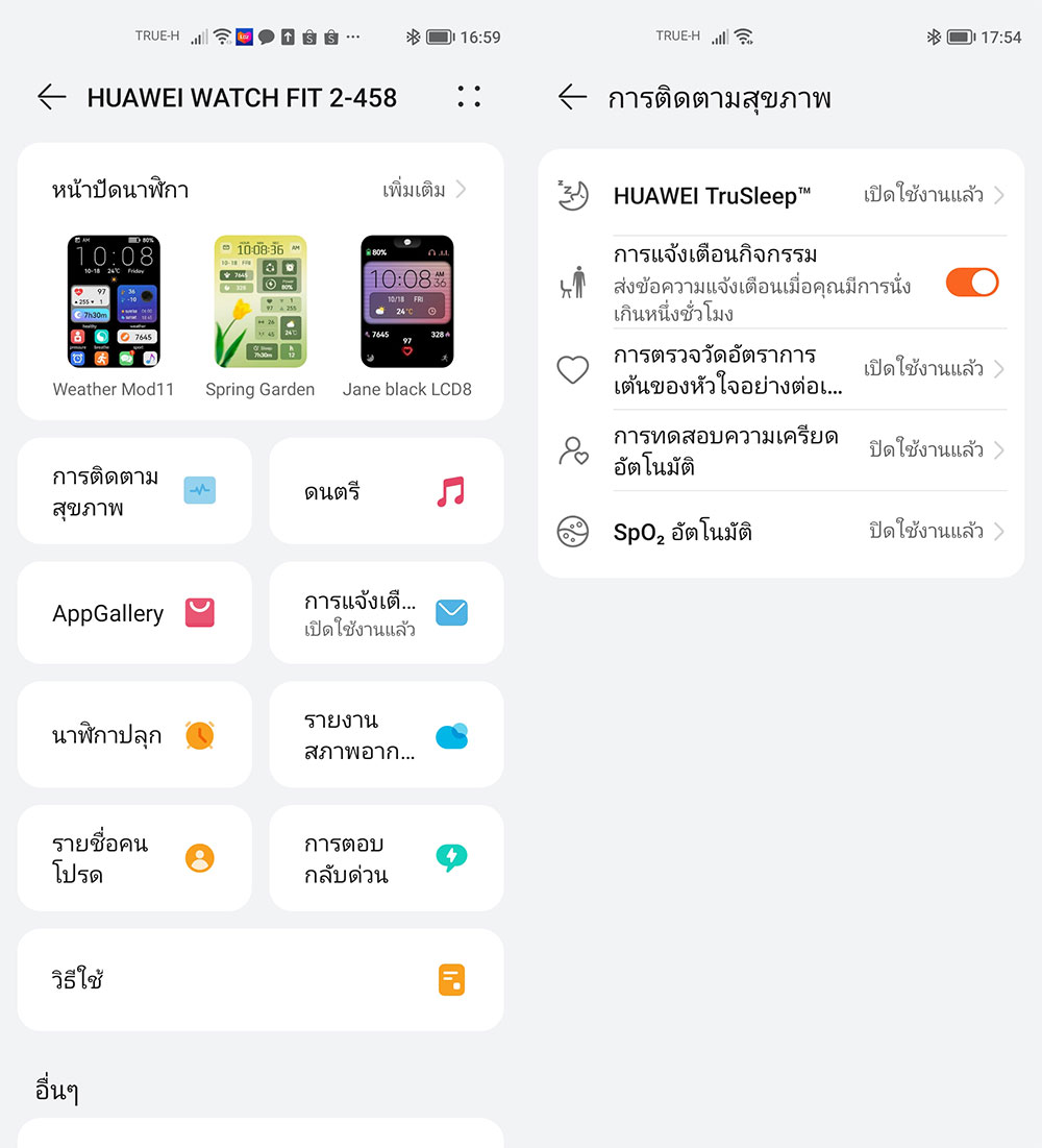 และเมื่อทำการจับคู่ HUAWEI WATCH FIT 2 กับสมาร์ทโฟนเสร็จเรียบร้อยแล้ว สามารถตั้งค่าและดูข้อมูลต่าง ๆ ที่อยู่บนสมาร์ทวอชได้ผ่านแอปฯ ไม่ว่าจะเป็น การเปลี่ยนหน้าปัด ที่มีให้เลือกดาวน์โหลดมากมาย, การตั้งค่าการติดตามสุขภาพ, การแจ้งเตือนแอปพลิเคชัน รวมถึงการอัปเดตเฟิร์มแวร์ ก็สามารถทำผ่านแอปฯ HUAWEI Health ได้เลย