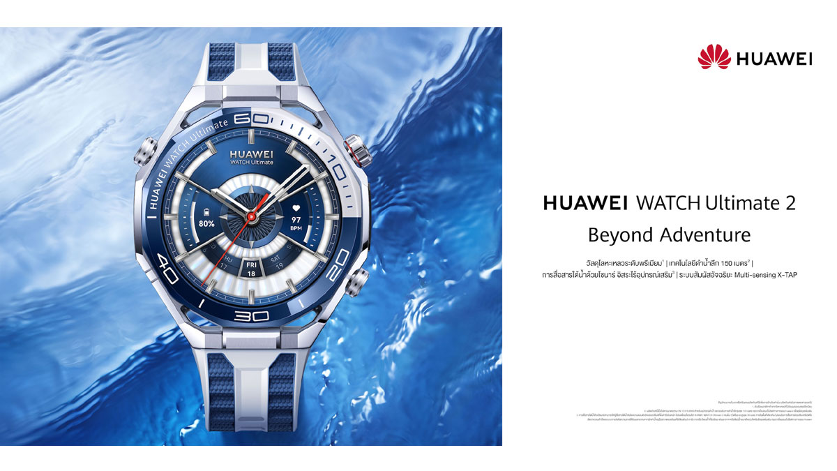 เตรียมยกระดับประสบการณ์การใช้สมาร์ทวอทช์สำหรับคอกิจกรรมเอ็กซ์ตรีม ด้วยการเปิดตัว HUAWEI WATCH Ultimate 2 สมาร์ทวอทช์สุดพรีเมียมที่ผสานความหรูหราเข้ากับสมรรถนะเหนือระดับ ครั้งแรกของโลกกับความสามารถในการดำน้ำลึกถึง 150 เมตร พร้อมฟีเจอร์การสื่อสารใต้น้ำแบบอิสระ และระบบตรวจวัดค่าสุขภาพครบวงจรระดับโปรเพียงปลายนิ้ว พร้อมเปิดพรีออเดอร์ให้จับจองตั้งแต่วันพฤหัสบดีที่ 16 ตุลาคม 2568 – วันศุกร์ที่ 24 ตุลาคม 2568 โปรโมชันสุดเอ็กซ์คลูซีฟ ในราคาเริ่มต้น 29,990 บาท พร้อมรับของสมนาคุณและสิทธิประโยชน์มากมาย