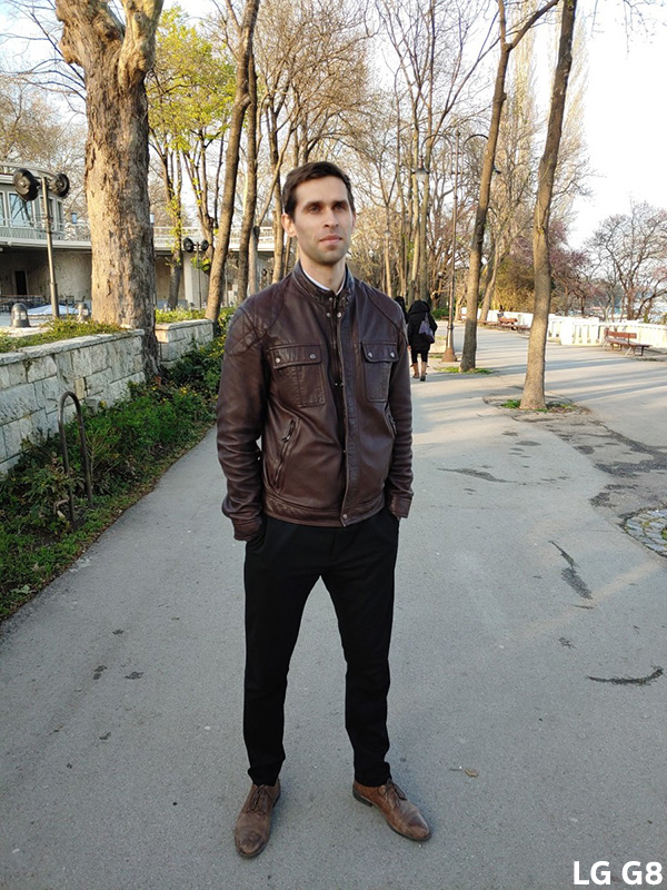 สำหรับซีนที่ 2 จะเห็นว่า ภาพจาก iPhone XS จะแตกต่างจากสมาร์ทโฟนรุ่นอื่น ๆ ที่นำมาทดสอบ เนื่องจากใช้เลนส์ Telephoto ในขณะที่อีก 5 รุ่นที่เหลือจะใช้เลนส์หลัก ซึ่งจะเห็นว่า ภาพที่ได้จาก LG G8 นั้น ไม่สามารถโฟกัสใบหน้าของบุคคลได้ (ทางทีมทดสอบเผยว่า ถ่ายใหม่หลายครั้งแล้วก็ยังได้ภาพแบบเดิม) ส่วนรุ่นอื่น ๆ ทำได้ดีไม่แพ้กัน ด้านภาพที่ได้จาก OnePlus 6T ได้สีสันที่ค่อนข้างซีด และขาดมิติไปเล็กน้อย