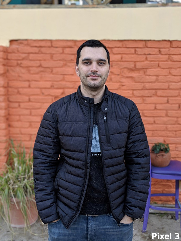 ถัดมาเป็นการถ่ายภาพในระยะที่ใกล้ขึ้น ซึ่งถ้าหากดูที่สัดส่วนของภาพ iPhone XS ดูเหมือนจะสมบูรณ์ที่สุด เนื่องจากใช้เลนส์ Telephoto แต่ภาพที่ได้จะติดโทนเขียวอมส้ม ส่วน Pixel 3 ทำได้ดีไม่แพ้กัน และได้สีสันที่เป็นธรรมชาติมากกว่า ส่วนรุ่นอื่น ๆ จะเห็นว่า เมื่อมีการถ่ายใกล้วัตถุ ใบหน้าและจมูกขยายออกและไม่ได้สัดส่วนที่ถูกต้อง ซึ่ง Samsung Galaxy S10+ ภาพที่ได้สว่างมากเกินไป และเก็บรายละเอียดของภาพถ่ายได้ไม่คมชัด ส่วน OnePlus 6T นอกจากจะเบลอเล็กน้อยแล้ว สีสันที่ได้ยังทึม ๆ อีกด้วย