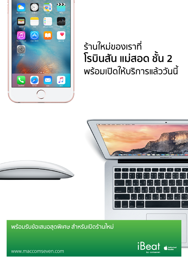เป็นเจ้าของผลิตภัณฑ์ Apple วันนี้ พร้อมรับข้อเสนอสุดพิเศษสำหรับเปิดร้านใหม่ ที่ร้าน iBeat by comseven สาขา โรบินสัน แม่สอด จ.ตาก