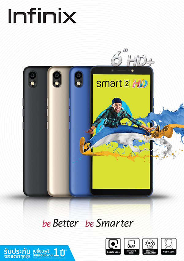 สำหรับแบรนด์ Infinix ถือเป็นแบรนด์สมาร์ทโฟนระดับ Inter Brand ที่มีการวางจำหน่ายสมาร์ทโฟนกว่า 26 ประเทศทั่วโลก ซึงล่าสุดทาง Infinix ก็ได้เตรียมที่จะวางจำหน่ายสมาร์ทโฟนรุ่นใหม่ที่มีชื่อว่า Infinix Smart 2 HD ที่ชูจุดเด่นในเรื่องของหน้าจอแสดงผลแบบไร้ขอบที่มีขนาดใหญ่เต็มตาถึง 6 นิ้ว พร้อมความละเอียดระดับ HD+ สำหรับรับชมคอนเทนท์ต่างๆ ได้อย่างคมชัด