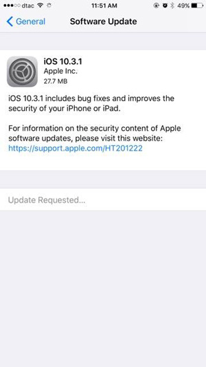 โดยผู้ใช้ iOS สามารถอัปเดต iOS 10.3.1 กันได้ผ่านทาง OTA