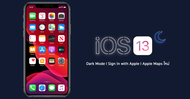 เปิดตัวอย่างเป็นทางการตามคาดแล้ว สำหรับ iOS 13 ระบบปฏิบัติการ iOS เวอร์ชันใหม่ล่าสุด ในงาน WWDC 2019 เมื่อช่วงเที่ยงคืนที่ผ่านมา (ตามเวลาในประเทศไทย) เรียกได้ว่า การมาของ iOS 13 ในปีนี้ มาพร้อมกับฟีเจอร์ใหม่มากมาย โดยเฉพาะอย่างยิ่ง Dark Mode ที่ตกเป็นข่าวลือมาอย่างยาวนาน ในที่สุดก็เผยโฉมอย่างเป็นทางการแล้วบน iOS 13 พร้อมกับของใหม่อย่าง Sign In with Apple วิธีการใหม่ในการลงชื่อเข้าใช้ในแอปพลิเคชันและเว็บไซต์ต่าง ๆ รวมถึง Apple Maps ใหม่ ละเอียดขึ้นและแม่นยำมากกว่าเดิม