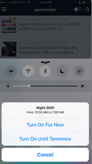 โดย Night Shift จะเป็นอีกหนึ่งฟีเจอร์ที่ถูกเพิ่มเข้ามาบน iOS 9.3 ด้วยการปรับความสว่างของหน้าจอ ให้เป็นแสงสีเหลืองนวล เมื่อเข้าสู่เวลากลางคืน และเป็นการถนอมสายตาไม่ให้โดนทำร้ายจากแสงสีฟ้าบนหน้าจอนั่นเอง โดย Night Shift จะถูกเพิ่มลงบน Control Center ด้วย เพื่อให้ผู้ใช้สามารถปรับเปลี่ยนการใช้งานได้ง่ายนั่นเอง