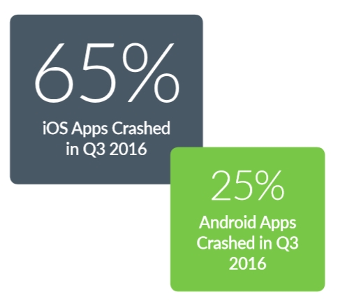 Blancco Technology Group ได้ทำการเปิดเผยรายงานฉบับใหม่ที่ได้รวบรวมข้อมูลการใช้มือถือและอุปกรณ์ชนิดอื่นทั้งระบบปฏิบัติการ Android และ iOS ของผู้ใช้ทั่วโลกในช่วงไตรมาสที่ 3 ที่ผ่านมา ซึ่งจุดที่น่าสนใจอยู่ที่อุปกรณ์ที่ทำงานอยู่บนระบบปฏิบัติการ iOS เกิดปัญหาแอปเด้ง (App Crash) เป็นสัดส่วนถึง 65% ซึ่งเท่ากับว่า iOS เกิดอาการแอปเด้งได้บ่อยกว่าอุปกรณ์ที่ใช้ระบบปฏิบัติการ Android เกือบ 3 เท่าตัวเลยทีเดียว (25%) นอกจากนี้ตัวเลขดังกล่าวยังสูงขึ้นกว่ารายงานฉบับที่แล้วที่มีสัดส่วนอยู่ 50% เท่านั้น