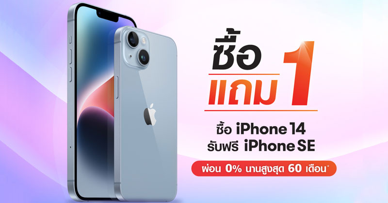 ล่าสุด TrueMove H จัดโปรโมชั่น iPhone 14 ซื้อ 1 แถม 1 เมื่อซื้อ iPhone 14 รับฟรี iPhone SE 3 มูลค่า 15,900 บาท พร้อมผ่อน 0% นานสูงสุด 60 เดือนอีกด้วย