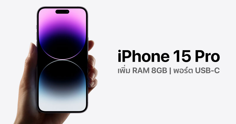ข้อมูลล่าสุดจาก TrendForce บริษัทวิเคราะห์ในไต้หวัน เผยว่า iPhone 15 Pro จะเพิ่ม RAM เป็น 8GB, เปลี่ยนเป็นพอร์ต USB-C และปรับปรุงประสิทธิภาพกล้องให้ดีขึ้น