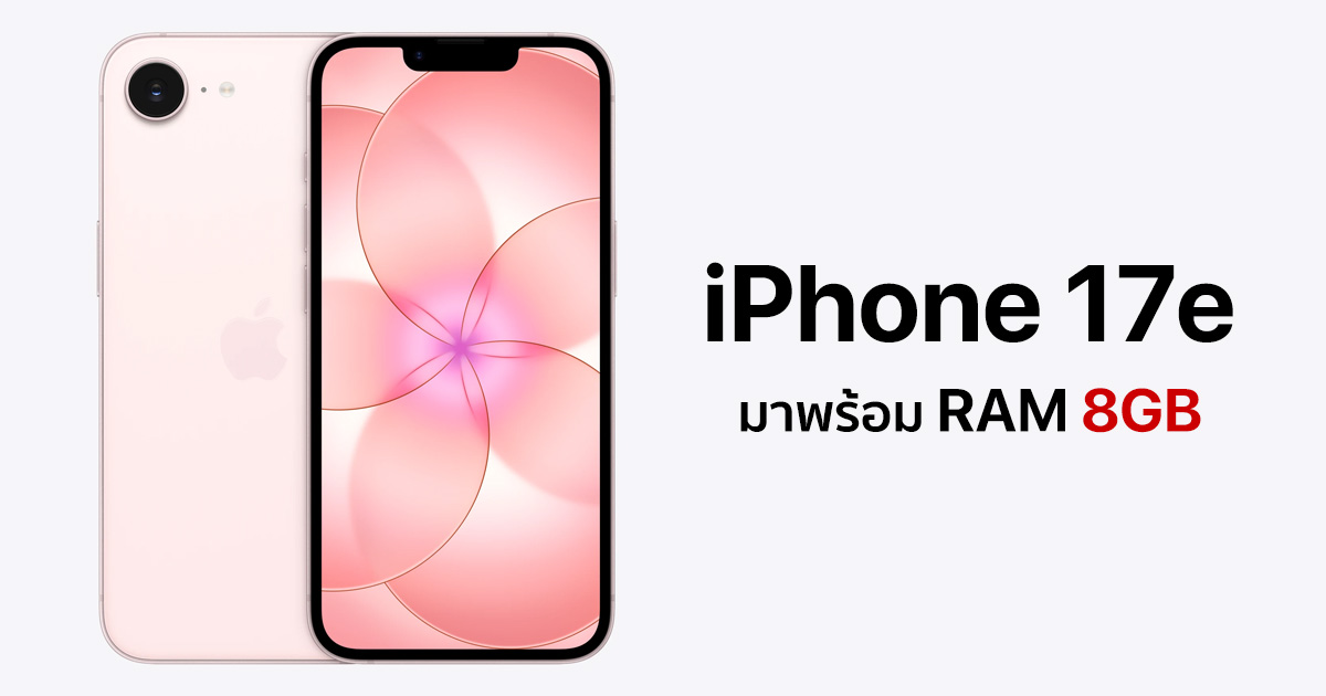 แม้ว่า Apple จะไม่เปิดเผยข้อมูลเกี่ยวกับหน่วยความจำ RAM ของ iPhone อย่างเป็นทางการ แต่ล่าสุดทาง MacRumors ได้ยืนยันข้อมูลผ่านเครื่องมือสำหรับนักพัฒนาอย่าง Xcode ว่า iPhone 17e มาพร้อม RAM ขนาด 8GB