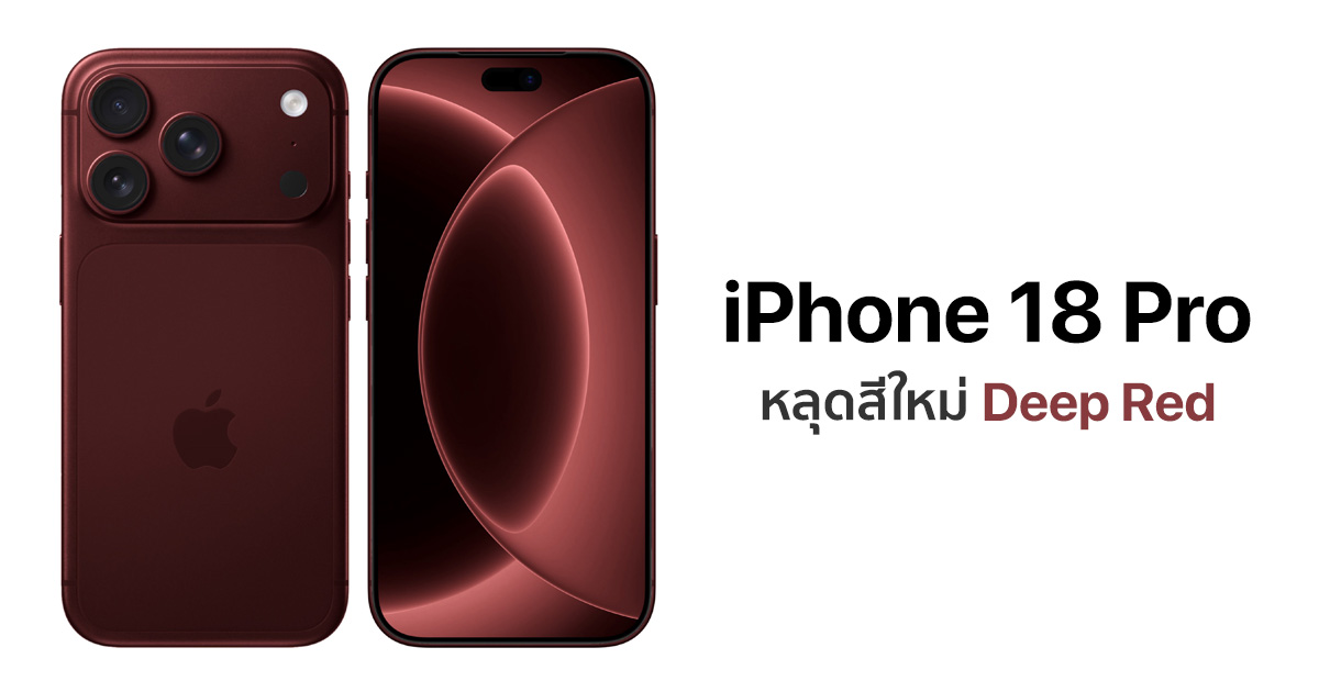 ข้อมูลล่าสุดจาก Mark Gurman แห่ง Bloomberg เผยว่า Apple กำลังพิจารณาเพิ่มสีพิเศษใหม่ให้กับ iPhone 18 Pro และ iPhone 18 Pro Max ในปีนี้ นั่นก็คือ สีแดง Deep Red ซึ่งเป็นโทนแดงเข้ม ไม่ใช่แดงสด โดยมีลักษณะใกล้เคียงกับสีแดง Burgundy