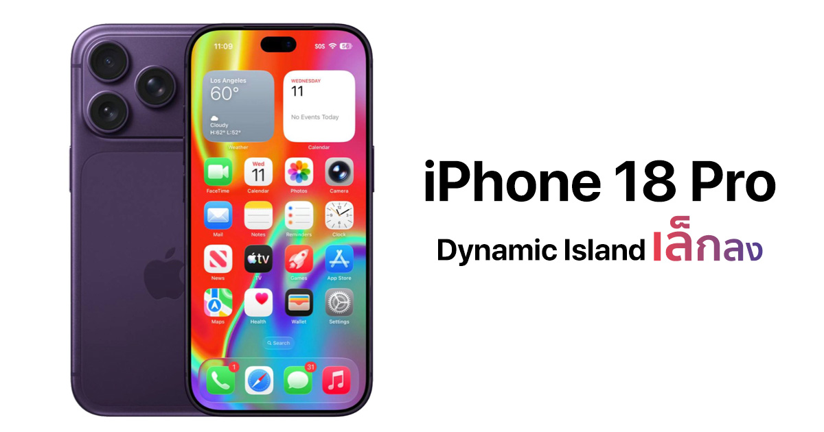 รายงานล่าสุดจาก Bloomberg ระบุว่า iPhone 18 Pro และ iPhone 18 Pro Max จะมาพร้อม Dynamic Island ที่มีขนาดเล็กลง แต่ยังไม่ถูกตัดออกไปในปีนี้