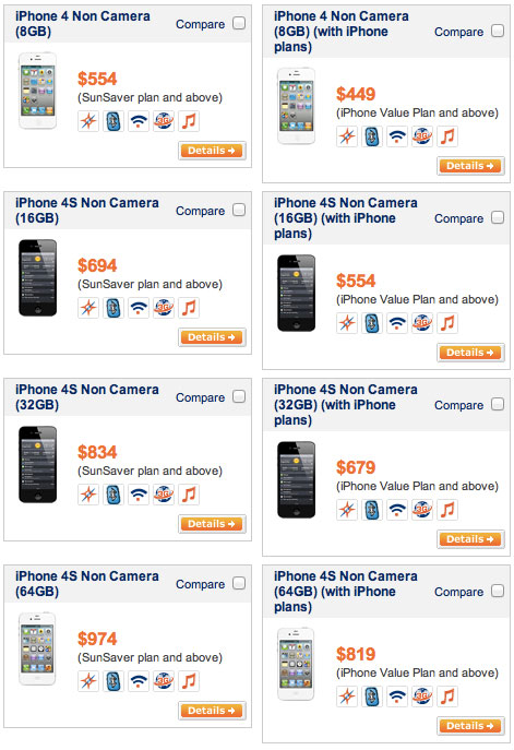 สำหรับราคาของ ไอโฟน 4 (iPhone 4) แบบไร้กล้อง เริ่มต้นที่ 13,850 บาท สำหรับเครื่องเปล่า รุ่น 8GB ส่วนราคา ไอโฟน 4S (iPhone 4S) เริ่มต้นที่ 17,350 บาท สำหรับเครื่องเปล่า รุ่น 16GB, 20,850 บาท สำหรับเครื่องเปล่า รุ่น 32GB และ 24,350 บาท สำหรับเครื่องเปล่ารุ่น 64GB นอกจากนี้ ยังมีจำหน่ายราคาแบบติดสัญญา 2 ปีอีกด้วย