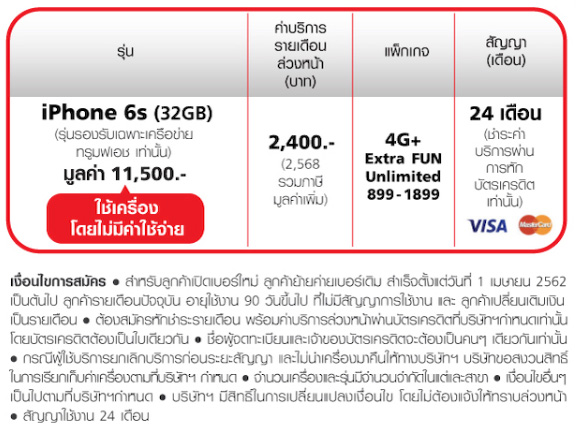 โดยโปรโมชั่น iPhone 6S ให้เครื่องไปใช้งานฟรีจาก TrueMove H นั้น สิ้นสุดวันที่ 30 มิถุนายน 2562 นี้