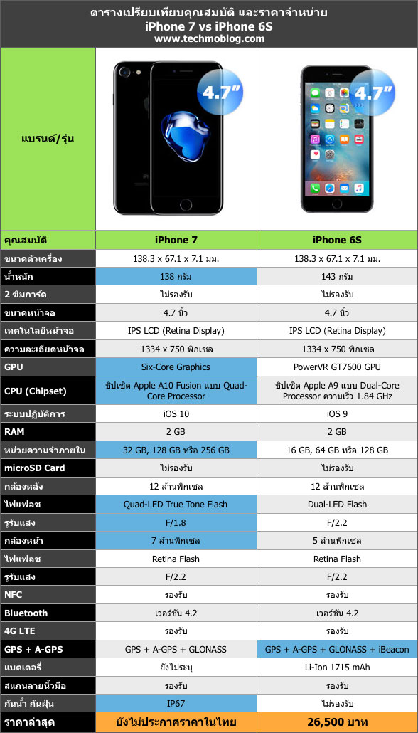 เปรียบเทียบสเปก และคุณสมบัติต่าง ๆ ระหว่าง iPhone 7 vs iPhone 6S
