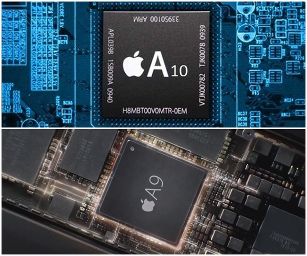 iPhone 7 มาพร้อมกับชิปเซ็ต 64-bit Apple A10 Fusion แบบ Quad-Core Processor และ M10 Motion Coprocessor ซึ่งประมวลผลได้เร็วกว่าชิปเซ็ต Apple A9 บน iPhone 6S และ iPhone 6S Plus ถึง 40%, เร็วกว่าชิปเซ็ต Apple A8 ถึง 2 เท่า ส่วนชิปประมวลผลกราฟิก เป็นแบบ Six-Core Processor เร็วกว่าบน Apple A9 ถึง 50% นอกจากนี้ iPhone 7 และ iPhone 7 Plus ยังรองรับเครือข่าย LTE มากถึง 25 ความถี่ พร้อมเทคโนโลยี LTE Advanced สามารถถ่ายโอนข้อมูลได้เร็วกว่า iPhone 6 ถึง 3 เท่า สูงสุดที่ 450 Mbps ในส่วนของชิปประมวลผลจึงมีประสิทธิภาพไม่ต่างกัน
