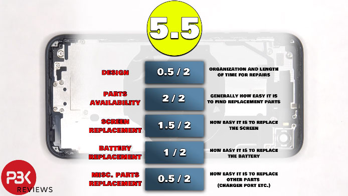 โดย PBKreviews ให้คะแนนในการซ่อม iPhone SE 3 ที่ 5.5/10 คะแนน
