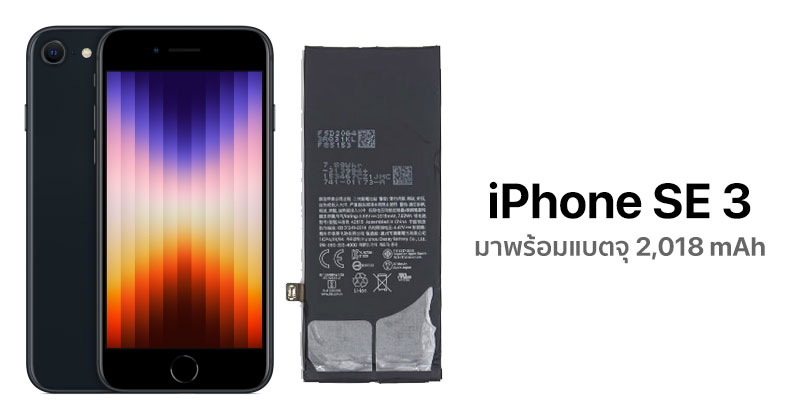 จากคลิปวิดีโอ PBKreviews เผยว่า iPhone SE 3 มาพร้อมกับขนาดความจุแบตเตอรี่เพิ่มขึ้นเมื่อเทียบกับ iPhone SE 2 รุ่นที่แล้ว จากเดิม 1,821 mAh เป็น 2,018 mAh ซึ่งสอดคล้องกับข้อมูลของ Apple ที่ว่า iPhone SE 3 ใช้งานได้นานขึ้นกว่าเดิม ซึ่งส่วนหนึ่งเป็นเพราะชิปเซ็ต Apple A15 Bionic ที่จัดการพลังงานได้ดีขึ้นด้วย