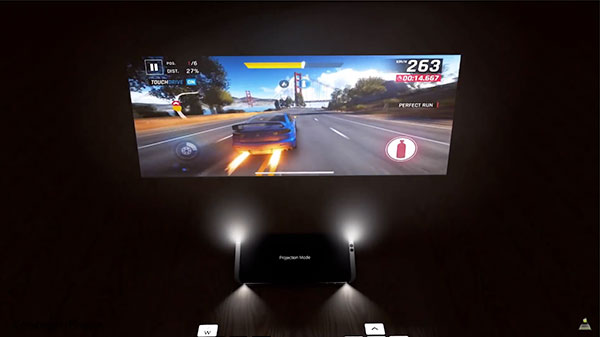 ด้านกล้องด้านหลัง เป็นกล้อง 3 ตัวแบบแนวนอน พร้อมฝาหลังที่สามารถเปิดออกได้แบบฝาพับ แม้ในคลิปวิดีโอจะไม่ได้ระบุว่า ฝาหลังแบบนี้มีไว้ใช้งานในด้านใด แต่คาดว่า น่าจะใช้เป็นขาตั้งเมื่อเปิดใช้งานแบบ Projection Mode นั่นเอง