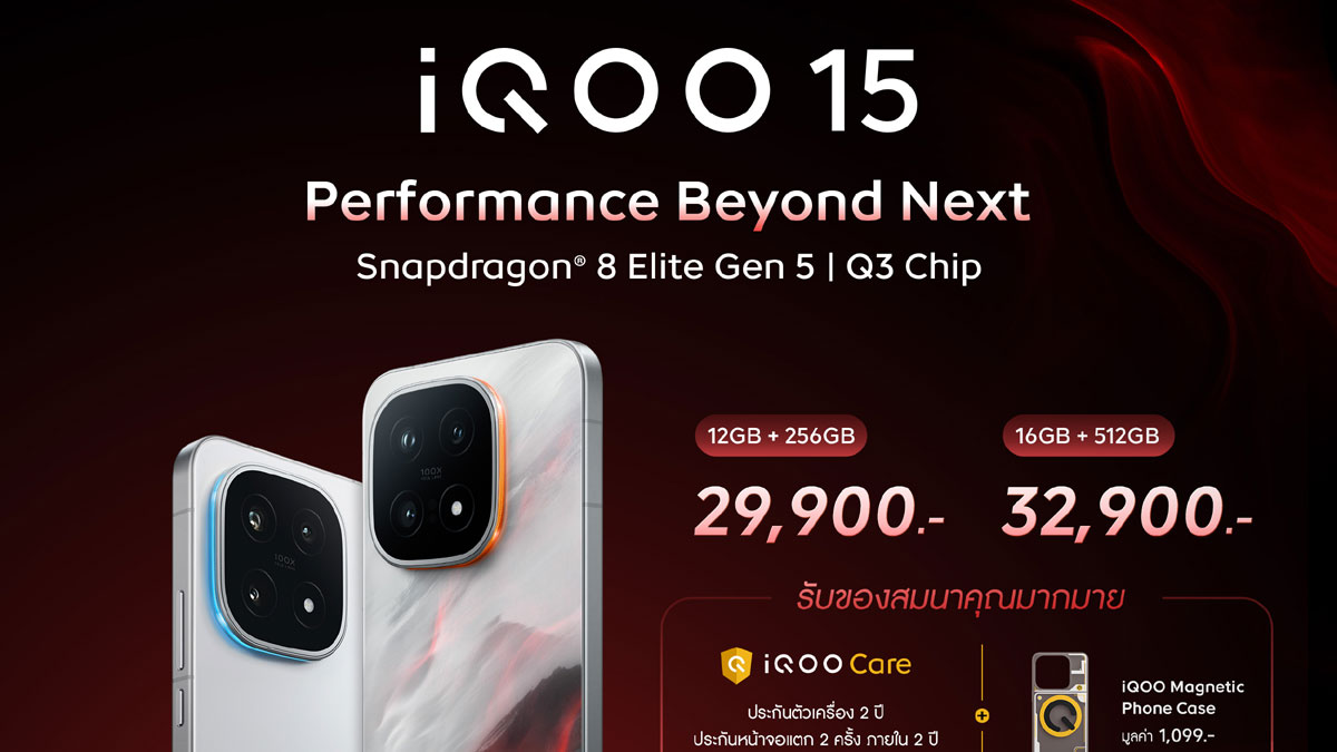 สัมผัสนิยามแห่งพลังที่สร้างมาเพื่อ MVPs บน iQOO 15 พร้อมลุยตลาดไทยในราคาเริ่มต้น 29,900 บาท