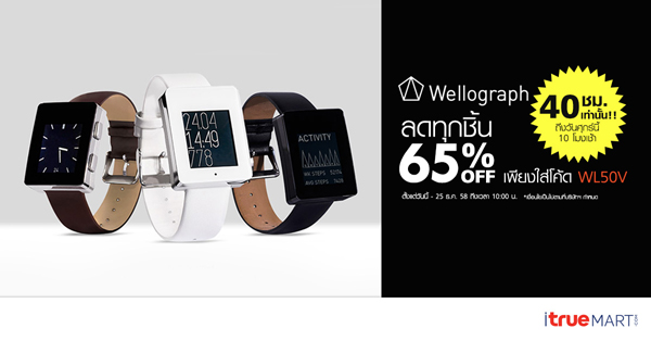 ลดจัดหนัก! ส่งท้ายปีกับไอเทมล้ำนำเทรนด์ Wellograph นาฬิกาอัจฉริยะ จะดีแค่ไหน? ถ้าคุณจะมีผู้ช่วยคอยดูแลสุขภาพและเป็นเพื่อนติดตามคุณไปได้ทุกๆ ที่อย่างใกล้ชิด นอกเหนือจากนี้ยังตรวจวัดอัตราการเต้นของหัวใจได้อย่างละเอียดด้วยเซนเซอร์ตรวจวัด 3 ตัว แถมยังรายงานผลแบบ Real Time และด้วยเทคโนโลยีที่ต้องบอกว่านำเทรนด์สุดๆ รองรับการใช้งานได้ทั้ง iOS, Android และ Windows Phone ที่สามารถเชื่อมต่อกับ Smartphone ได้รวดเร็วกว่าเดิม วัสดุที่ทำออกมาบอกเลยว่าแข็งแรงทนทาน กันน้ำได้ลึกถึง 50 เมตร หน้าปัดทำจากกระจก Sapphire ป้องกันรอยขีดข่วน ตอบโจทย์การใช้งานทุก Lifestyle ได้อย่างลงตัว เห็นหรือยังว่ายิ่งใส่ยิ่งเท่ห์ และที่สำคัญกว่านั้น ตอนนี้ที่ iTrueMart เอาใจคนรักสุขภาพ ด้วยการจัดโปรโมชั่นสุดคุ้มคืนกำไรให้ลูกค้า ด้วยการปล่อยของ ในราคา 4,450 บาท เห็นปุ๊บถึงกับอึ้ง ถูกกว่านี้ไม่มีแล้ว กติกาก็เหมือนเดิมง่ายๆ ใส่โค๊ดลดเพิ่มตามที่บริษัทกำหนด รับไปทันที ส่วนลด 50% รีบเลยๆ เพราะโปรนี้เริ่มแล้วตั้งแต่วันนี้ – วันที่ 25 ธันวาคม 2558 สิ้นสุดเวลา 10 โมง อย่าลืมว่าราคานี้แค่ 40 ชั่วโมงเท่านั้น มาเป็นเจ้าของได้ง่ายๆ ด้วยราคาสบายๆที่ iTrueMart ที่เดียว คลิกเลย >> https://bit.ly/22pNIkC