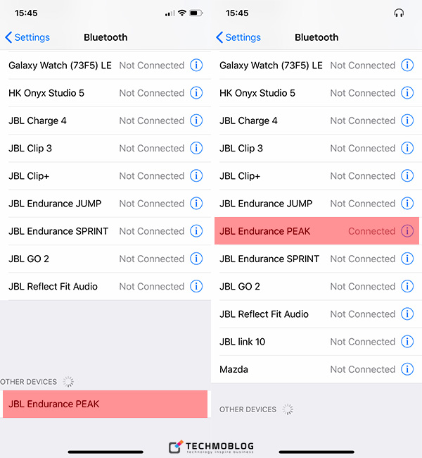 สำหรับการจับคู่หูฟังไร้สาย JBL Endurance PEAK กับสมาร์ทโฟนเป็นครั้งแรก หลังจากเปิดเครื่องแล้ว ให้รอประมาณ 5 วินาที จะมีไฟสีน้ำเงินกระพริบปรากฏ จากนั้นให้ไปที่สมาร์ทโฟน เลือก Settings > Bluetooth > JBL Endurance PEAK ถ้าหากการเชื่อมต่อสมบูรณ์ ไฟแสดงสถานะจะเปลี่ยนเป็นสีน้ำเงินนิ่ง