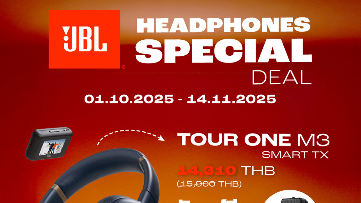 บริษัท มหาจักรดีเวลอปเมนท์ จำกัด ผู้นำเข้าและจัดจำหน่ายผลิตภัณฑ์แบรนด์ JBL อย่างเป็นทางการในประเทศไทย จัดแคมเปญสุดพิเศษ “JBL Headphones Special Deal” มอบประสบการณ์เสียงเหนือระดับให้คนรักเสียงเพลงได้สัมผัสความคุ้มค่ากว่าที่เคย กับ โปรโมชันลดแรง ลดหนัก คุ้มที่สุดแห่งปีเมื่อซื้อหูฟัง JBL รุ่นยอดนิยม ในราคาสุดพิเศษ พร้อมรับของแถมสุดพรีเมียม อาทิ กระเป๋าเดินทาง JBL ดีไซน์หรู และ ลำโพงพกพา JBL Wind 3S ที่มาพร้อมฟังก์ชันกันน้ำและเสียงทรงพลัง ให้คุณพกพาความสนุกไปได้ทุกที่ ตั้งแต่วันนี้ – 14 พฤศจิกายน 2568 เท่านั้น