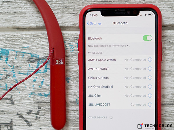 สำหรับการเชื่อมต่อหูฟังไร้สาย JBL LIVE 200BT กับสมาร์ทโฟน ให้เปิดปุ่ม Power ที่ตัวหูฟัง และกดปุ่ม Bluetooth เพื่อปล่อยสัญญาณสำหรับเชื่อมต่อ จากนั้นให้มาที่สมาร์ทโฟน ด้วยการเข้าไปที่ Settings > Bluetooth แล้วเลือก JBL LIVE200BT
