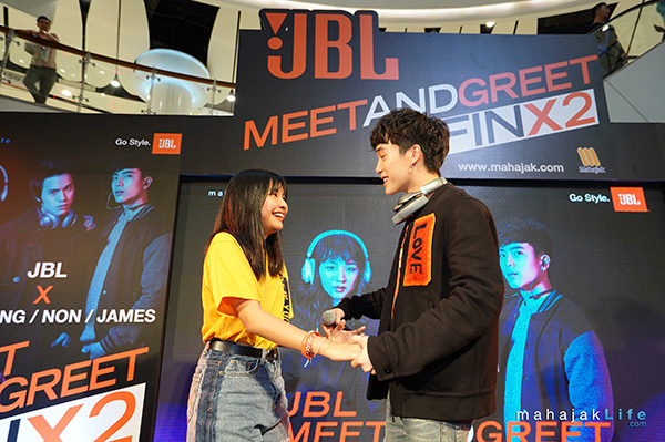 เมื่อวันเสาร์ที่ 9 มิถุนายน ที่ผ่านมา ทางบริษัท มหาจักรดีเวลอปเมนท์ จำกัด ได้จัดงาน JBL Meet & Greet Fin X2 กับ นน ชานน, เจมส์ ธีรดนย์ และต้าเหนิง กัญญาวีร์ ที่ โซน Central Court ชั้น 1 ศูนย์การค้า Central World ซึ่งบรรยากาศเต็มไปด้วยความฟินกันทั้งงาน เริ่มตั้งแต่ช่วงแรก เปิดตัวน้องทั้ง 3 คน ด้วย VDO โฆษณาของแต่ละคน เรียกเสียงกรี๊ดจากเหล่าบรรดาแฟนคลับกันมากมายเลยทีเดียว