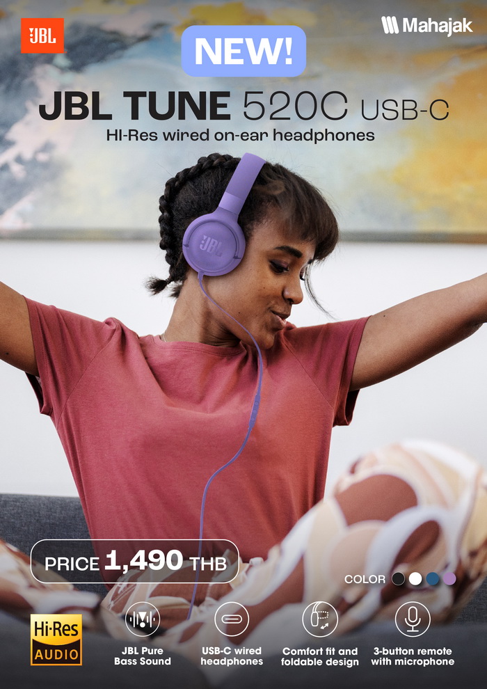 NEW!! JBL TUNE 520C USB-C หูฟัง Hi-Res พกพาสะดวก พร้อมพลังเสียงเบสทรงพลัง