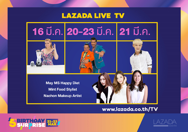 16 มีนาคม 2560, ประเทศไทย – ลาซาด้า ประเทศไทย ขอบคุณลูกค้าชาวไทยที่ให้การสนับสนุนด้วยดีตลอดห้าปีที่ผ่านมาด้วยแคมเปญฉลองวันเกิด เริ่ม 21 – 23 มีนาคม 2560 นี้ภายใต้คอนเซ็ปต์ ‘เซอร์ไพร์ส เกิดทั้งที ดีลดี ต้องมีให้ครบ’ ซึ่งลาซาด้าได้คัดสรรเอาดีลสุดพิเศษกว่าหนึ่งล้านดีลจากหมวดหมู่สินค้ายอดนิยมบนเว็บไซด์กว่า 17 หมวดหมู่มาให้ขาช้อปชาวไทยได้เลือกซื้อกันให้หนำใจตลอดสามวันเต็ม โดยเริ่มวันแรกด้วยสินค้ายอดนิยมประจำเว็บไซด์จัดอันดับโดยลาซาด้า ต่อด้วยวันที่สองด้วยโปรโมชั่นจากสินค้าที่ทุกคนอยากได้มากที่สุด และปิดท้ายวันที่สามของแคมเปญด้วยส่วนลดสุดช็อคสำหรับสินค้าที่มีการค้นหามากที่สุดบนเว็บไซด์