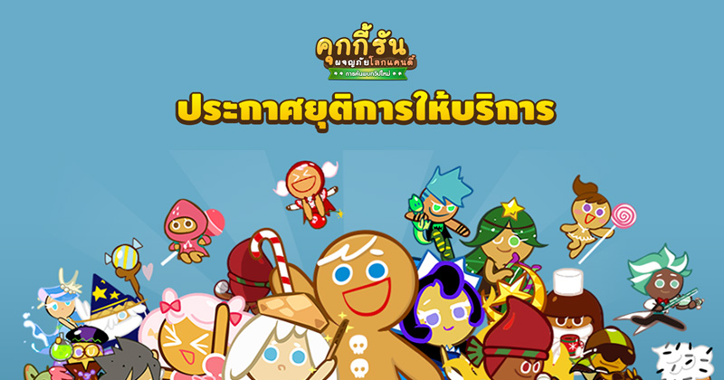 ตั้งแต่วันแรกที่เปิดให้บริการ จนมาถึงวันนี้ ช่วงเวลาที่ได้ออกวิ่งตะลุยไปกับทุกๆ คนใน LINE Cookie Run คือความสนุกสนาน และความทรงจำที่ยอดเยี่ยมที่สุด ทว่าในวันนี้ ทีมงานมีความเสียใจเป็นอย่างยิ่งที่ต้องแจ้งให้ทุกท่านทราบว่า การวิ่งของพวกเราได้ดำเนินมาถึงจุดสิ้นสุดแล้ว โดย LINE Cookie Run มีความจำเป็นต้องประกาศยุติการให้บริการเกมและระบบต่างๆ ที่เกี่ยวข้อง ซึ่งมีกำหนดการดังนี้