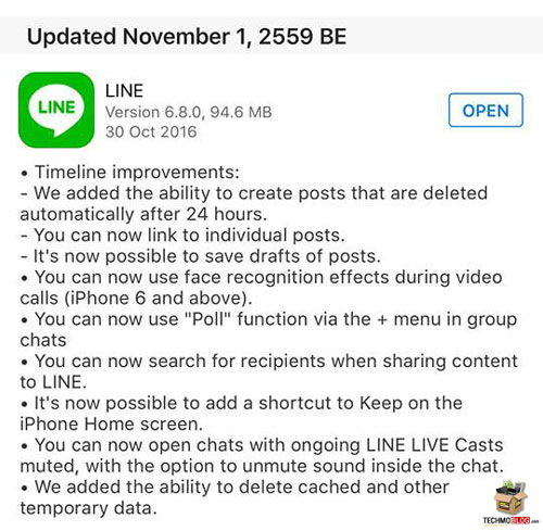 ส่วน LINE for iOS เวอร์ชัน 6.8.0 ได้เพิ่มฟังก์ชันและปรับปรุงการใช้งาน ดังนี้