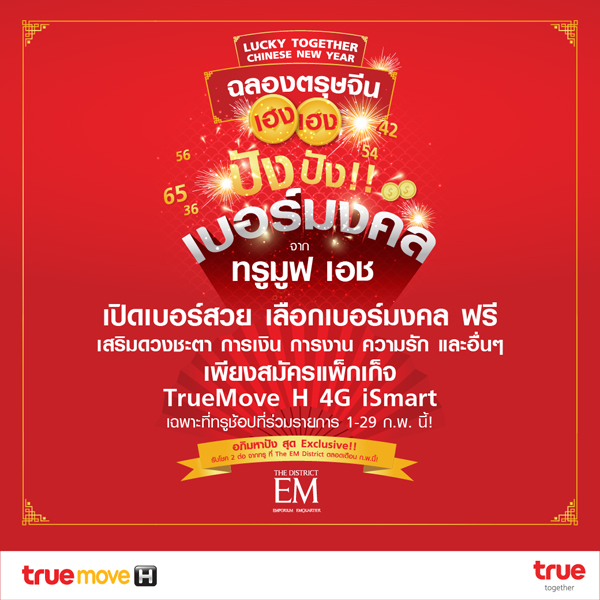ฉลองตรุษจีน เฮง เฮง ปัง ปัง เบอร์มงคลจากทรูมูฟ เอช เปิดเบอร์สวยเลือกเบอร์มงคล ฟรี!!! เสริมดวงชะตา การเงิน การงาน ความรัก และอื่นๆ