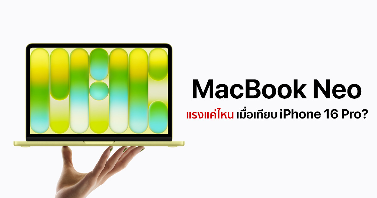 หลังจากที่ Apple เปิดตัว MacBook Neo ซึ่งเป็น MacBook ที่ราคาถูกที่สุด ไปเมื่อวันก่อน ล่าสุด มีผลทดสอบ Benchmark ของ MacBook Neo ออกมาแล้ว โดยผลลัพธ์ก็ออกมาตามที่หลายฝ่ายคาดการณ์ไว้ คือประสิทธิภาพของ CPU แทบไม่ต่างจาก iPhone 16 Pro มากนัก