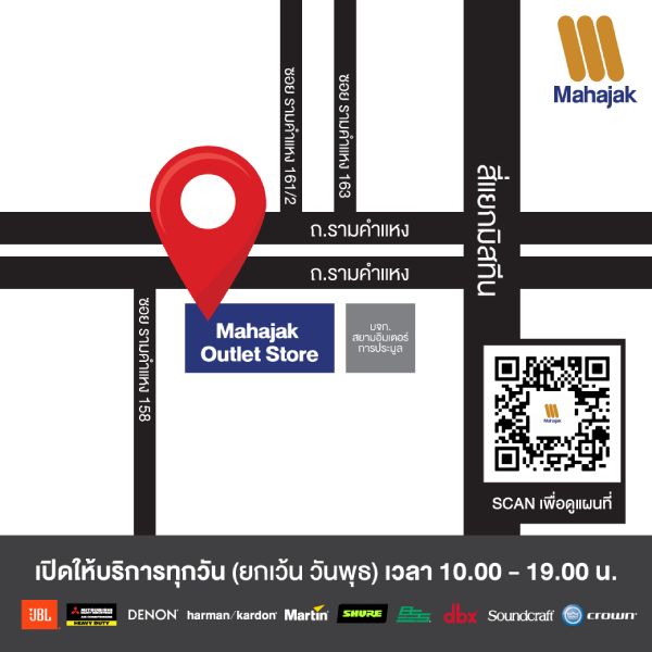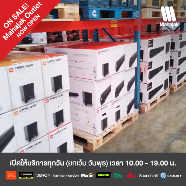 บริษัท มหาจักรดีเวลอปเมนท์ จำกัด ได้เปิด Mahajak Outlet Store ใหม่ ซึ่งพร้อมให้บริการแล้วตั้งแต่วันนี้ โดยมีสินค้าพร้อมจำหน่ายมากมาย ตั้งแต่ ลำโพงพกพา และหูฟัง ในหมวดของ Professional Audio, Home Audio และ Car Audio เรียกได้ว่าเราจับมาลดราคาทุก Category เอาใจทุกสายคนเล่นเสียง