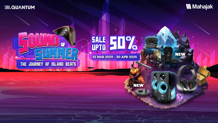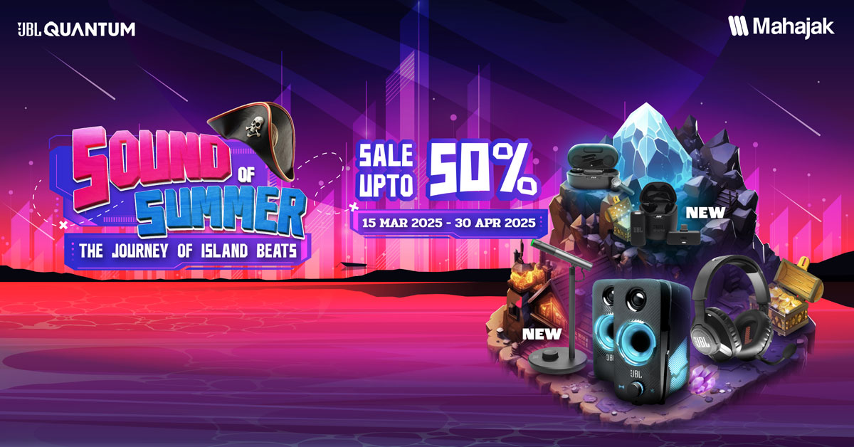 บริษัท มหาจักรดีเวลอปเมนท์ จำกัด ดีลสุดพิเศษรับหน้าร้อน กับ Sound of Summer 2025 ปีนี้มาในธีม The Journey Of Island Beats การเดินทางสุดลึกลับ ที่จะพาทุกคนไปตามหาขุมทรัพย์ไม่ว่าจะเป็น หูฟัง ลำโพง และไมค์ สุดเท่ที่เต็มไปด้วยคุณภาพ จาก JBL Quantum Series ลดสูงสุดถึง 50% รายละเอียดดังนี้
