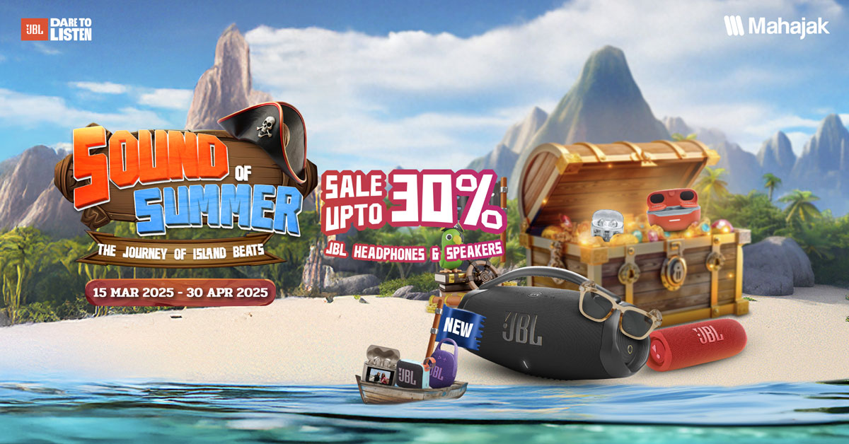 บริษัท มหาจักรดีเวลอปเมนท์ จำกัด ดีลสุดพิเศษรับหน้าร้อน กับ Sound of Summer 2025 ปีนี้มาในธีม The Journey Of Island Beats การเดินทางสุดตื่นเต้น ที่จะพาทุกคนไปเปิดประสบการ์ณใหม่ ๆ แบบจัดเต็ม ไม่ว่าจะเป็น หูฟัง และลำโพง คุณภาพดี เสียงเพราะจากแบรนด์ JBL ที่ลดสูงสุดถึง 30% รายละเอียดดังนี้