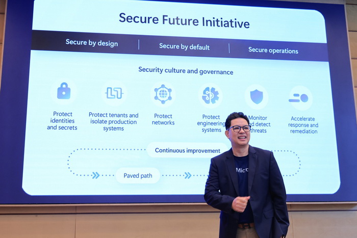 ไมโครซอฟท์เป็นหนึ่งในผู้นำด้าน AI ระดับโลกที่ยึดมั่นหลักธรรมาภิบาลในการพัฒนาเครื่องมือและเทคโนโลยีปัญญาประดิษฐ์มาโดยตลอด ได้มีส่วนร่วมในการนำเสนอกรอบความคิดและทิศทางเชิงนโยบายให้กับประเทศไทย โดยประสานความร่วมมือกับทุกภาคส่วน เพื่อให้ประเทศไทยได้รับประโยชน์จาก AI อย่างเต็มที่ รวมถึงทำงานอย่างใกล้ชิดกับหน่วยงานภาครัฐของไทย อาทิ กระทรวงดิจิทัลเพื่อเศรษฐกิจและสังคม สํานักงานคณะกรรมการการรักษาความมั่นคงปลอดภัยไซเบอร์แห่งชาติ สำนักงานพัฒนารัฐบาลดิจิทัล (องค์การมหาชน) และสำนักงานพัฒนาธุรกรรมทางอิเล็กทรอนิกส์ รวมถึงธนาคารแห่งประเทศไทย เพื่อให้คำแนะนำด้านความปลอดภัย การใช้บริการคลาวด์ และการใช้ AI อย่างมีจริยธรรมและมีความรับผิดชอบต่อสังคม โดยเหนือสิ่งอื่นใด ความปลอดภัยยังคงเป็นหัวใจสำคัญในทุกผลิตภัณฑ์และบริการของไมโครซอฟท์ โดยเฉพาะในยุค AI ที่เทคโนโลยีมีความสามารถมากขึ้น และมีโอกาสถูกนำไปใช้ในทางที่ผิดได้มากขึ้นเช่นกัน โดยไมโครซอฟท์มีหลักพื้นฐานและโครงการริเริ่มมากมายในด้านนี้ เริ่มตั้งแต่ขั้นตอนการพัฒนาด้วยแนวคิด Secure Future Initiative ที่ครอบคลุมหลักการความปลอดภัย 3 ประการ ได้แก่ Secure by design, Secure by default และ Secure operations เพื่อให้มั่นใจว่า AI ที่พัฒนาขึ้นมีความปลอดภัย รวมถึงมาตรการ AI Guardrail เพื่อปกป้องไม่ให้ AI ถูกนำไปใช้ในทางที่ผิด