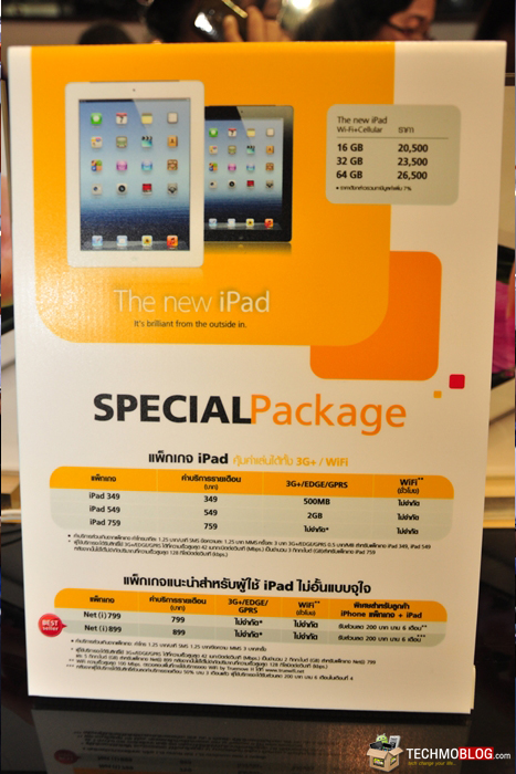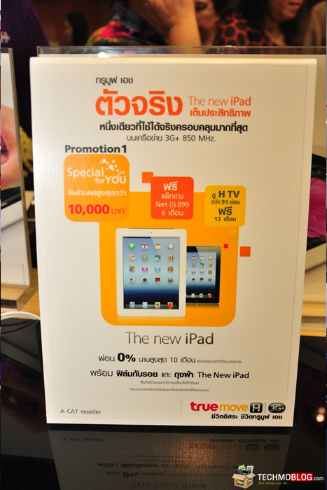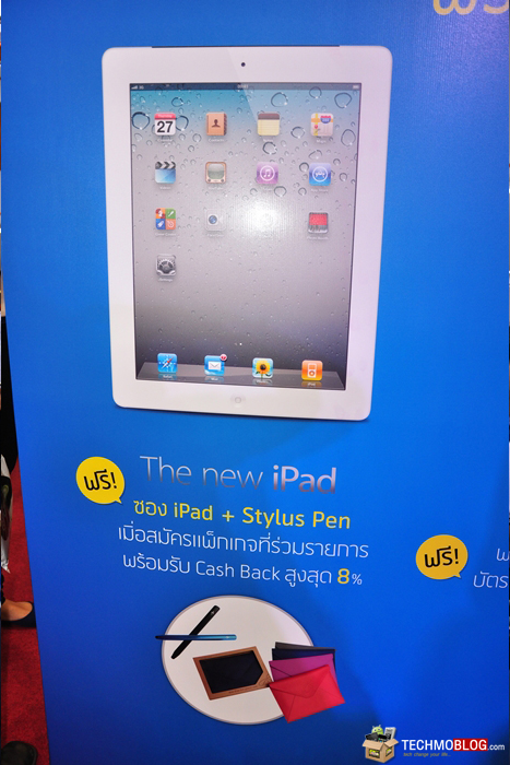 [4-ตุลาคม-2555] ยังคงเป็นแท็บเล็ตที่ได้รับความสนใจกันอย่างต่อเนื่อง กับ The new iPad (iPad 3) ที่นำมาเปิดจำหน่ายในงานนี้เช่นกันครับ ซึ่ง The new ipad ที่เปิดจำหน่ายในงาน จากทั้ง 3 ค่าย ได้แก่ Dtac, AIS และ Truemove H นั้น เป็นรุ่น Wi-Fi + Cellular ครับ เนื่องจากต้องขายพ่วงกับแพ็กเกจอินเทอร์เน็ตนั่นเอง มาดูกันว่า ราคา The new iPad (iPad 3) ในงานนี้ จะเป็นอย่างไร และมีโปรโมชั่น ของแถมอะไรกันบ้าง