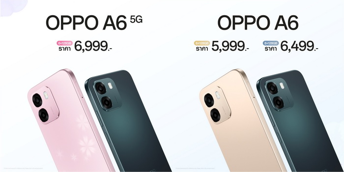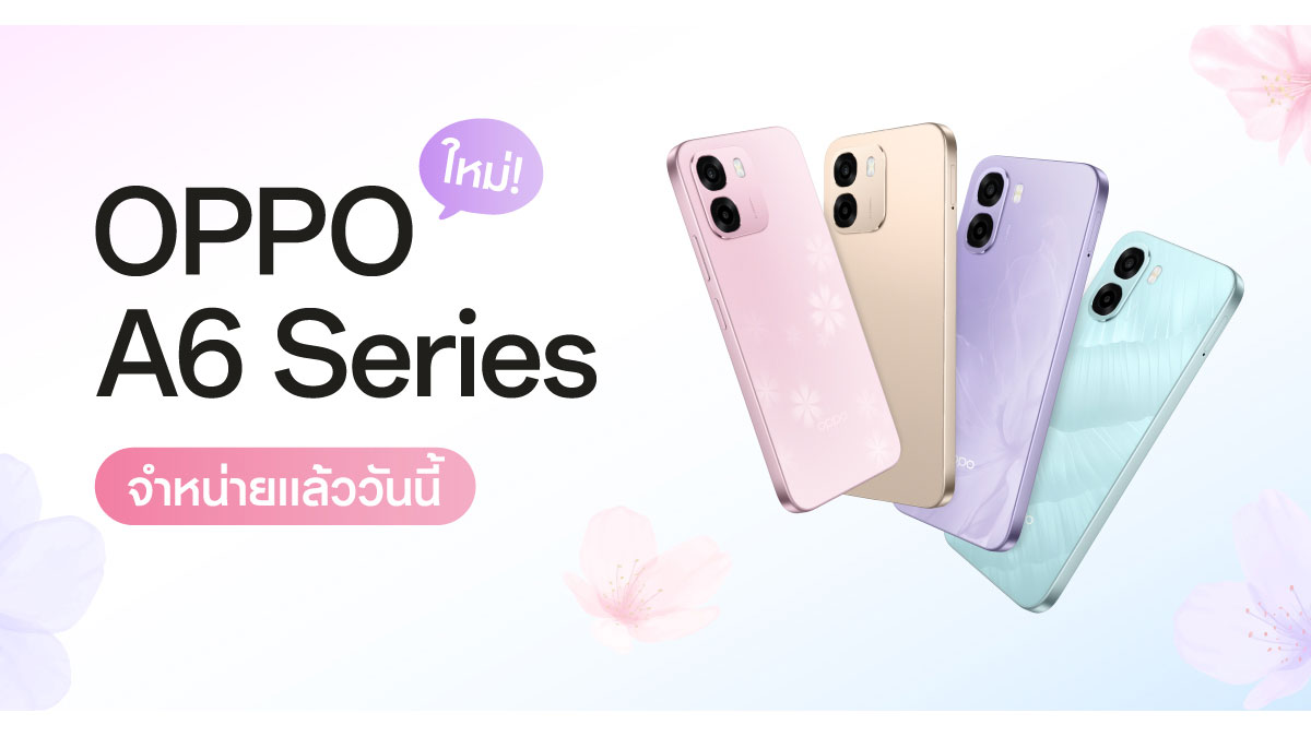 OPPO A6 Series สมาร์ตโฟนสมูทเกินต้าน ทนทานทุกดาเมจ วางจำหน่ายอย่างเป็นทางการแล้ววันนี้ สมาร์ตโฟนจากตระกูลซีรีส์ A มาใน 4 รุ่น ได้แก่ OPPO A6 5G, OPPO A6, OPPO A6x 5G และ OPPO A6x สมาร์ตโฟนที่มาพร้อมประสบการณ์ทนทานทุกดาเมจ ครอบคลุมทุกการใช้งาน ในราคาสุดคุ้มค่า เริ่มต้นเพียง 3,499 บาทเท่านั้น!