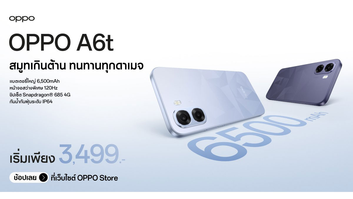 สายทนทานห้ามพลาด OPPO A6t Series มาพร้อมราคาสุดคุ้มค่า วางจำหน่ายแล้ววันนี้เฉพาะช่องทางออนไลน์เท่านั้น!