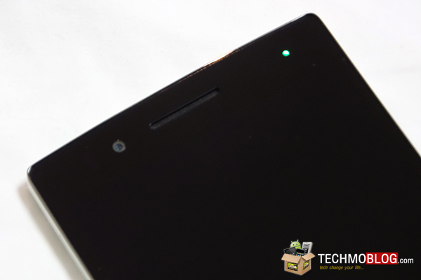 ด้านบนของตัวเครื่องจะประกอบด้วย เซ็นเซอร์ และ กล้องหน้าความละเอียด 1.9 ล้านพิกเซล และมีไฟ LED แสดงสถานะต่างๆของตัวเครื่องอีกด้วย