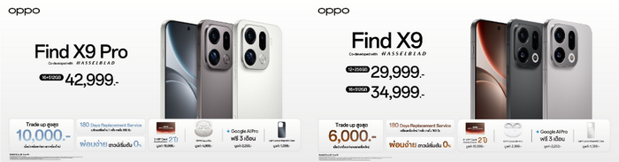 และสามารถเป็นเจ้าของ OPPO Find X9 Series ได้ง่ายมากขึ้นด้วยโปรโมชั่นมากมายดังต่อไปนี้