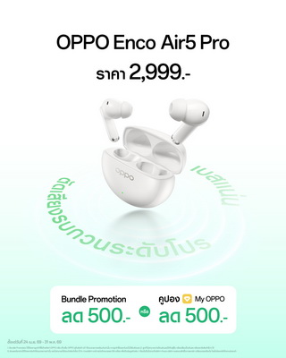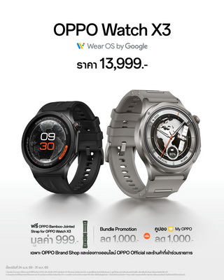 รวมถึงหูฟังไร้สายรุ่นใหม่ OPPO Enco Clip2, OPPO Enco Air5 Pro และสมาร์ตวอทช์ OPPO Watch X3 สัมผัสได้แล้ววันนี้ ณ OPPO Brand Shop ทุกสาขา และตัวแทนจำหน่ายทั่วประเทศ