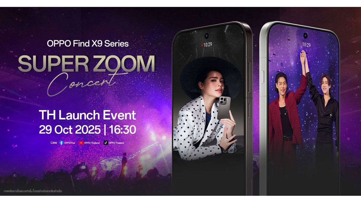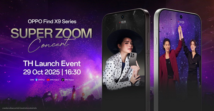 ออปโป้ ประเทศไทยเตรียมเปิดตัว OPPO Find X9 Series สมาร์ตโฟนแฟลกชิปซูมดีทุกคอนเสิร์ต พร้อมเตรียมพบกับประสบการณ์ความชัดระดับแฟลกชิปจาก OPPO กับงาน “Super Zoom Concert” คอนเสิร์ตครั้งใหญ่ที่รวมความบันเทิงและเทคโนโลยีเข้าไว้ด้วยกันอย่างลงตัว เพื่อเฉลิมฉลองการเปิดตัวสมาร์ตโฟนรุ่นใหม่ล่าสุด OPPO Find X9 Series สมาร์ตโฟนแฟลกชิปที่พร้อมยกระดับการซูมให้ชัดทุกองศา